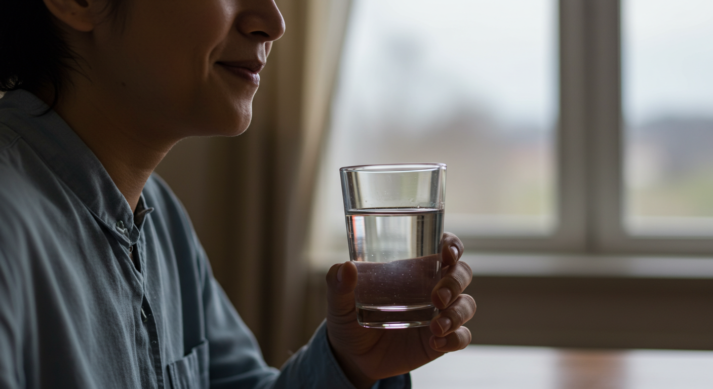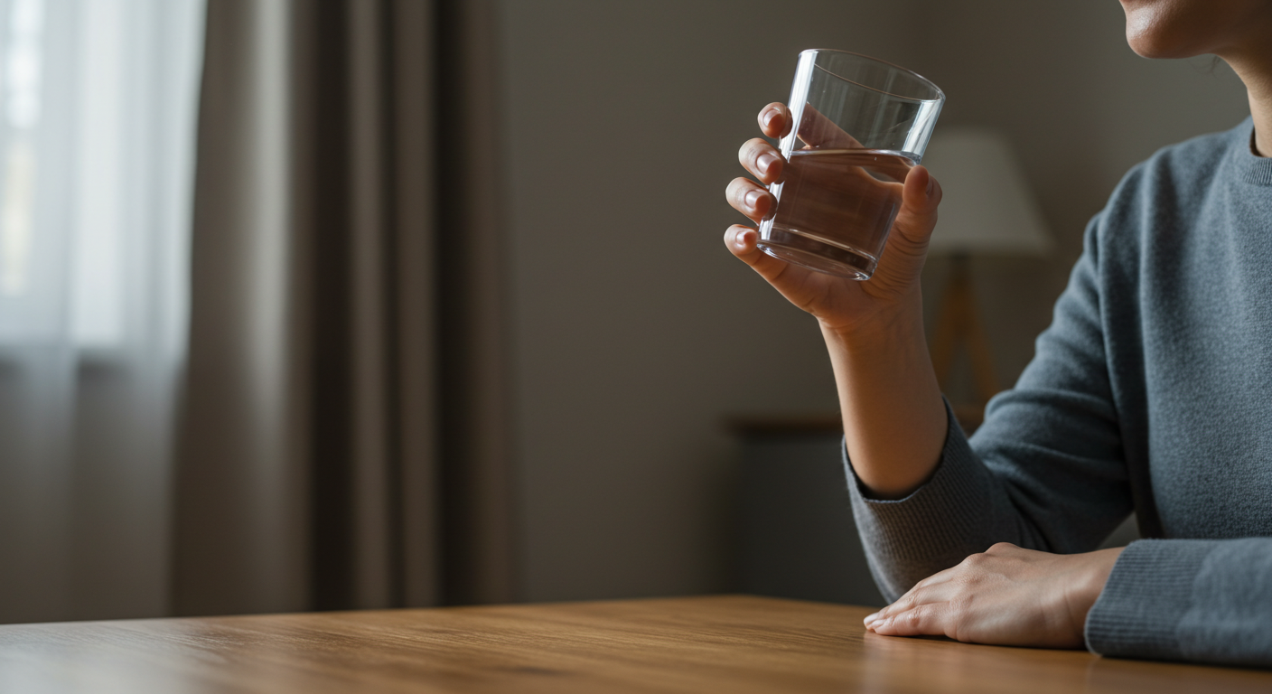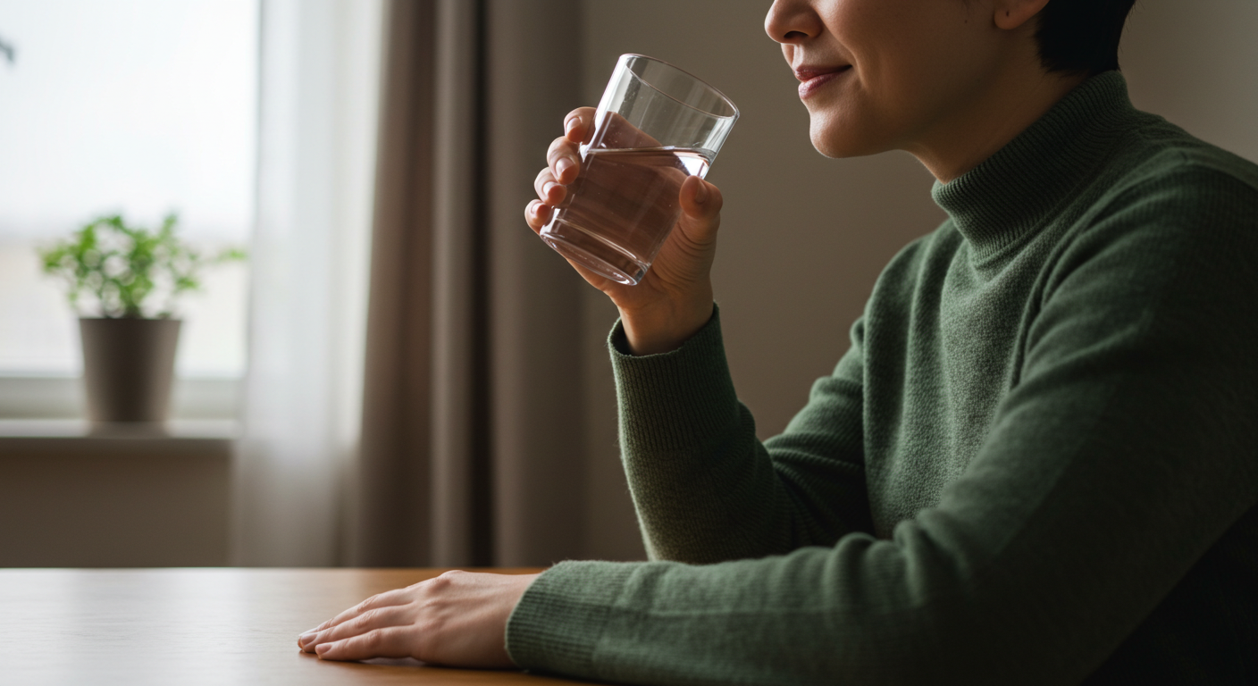 A2. 물을 한 모금 마시되, 천천히 마시고, 가능한 한 급하게 마시지 않는 것이 중요해요.