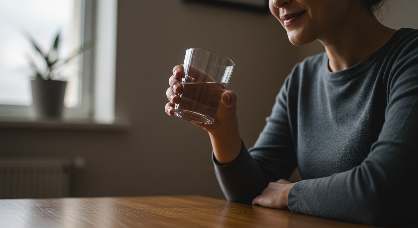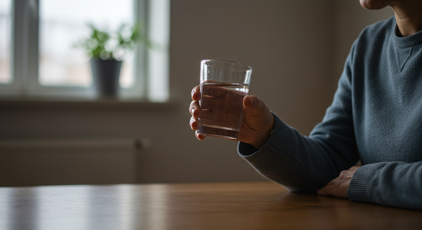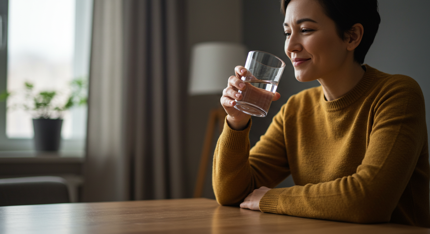 A2. 물을 한 모금 마시되, 천천히 마시고, 가능한 한 급하게 마시지 않는 것이 중요해요.