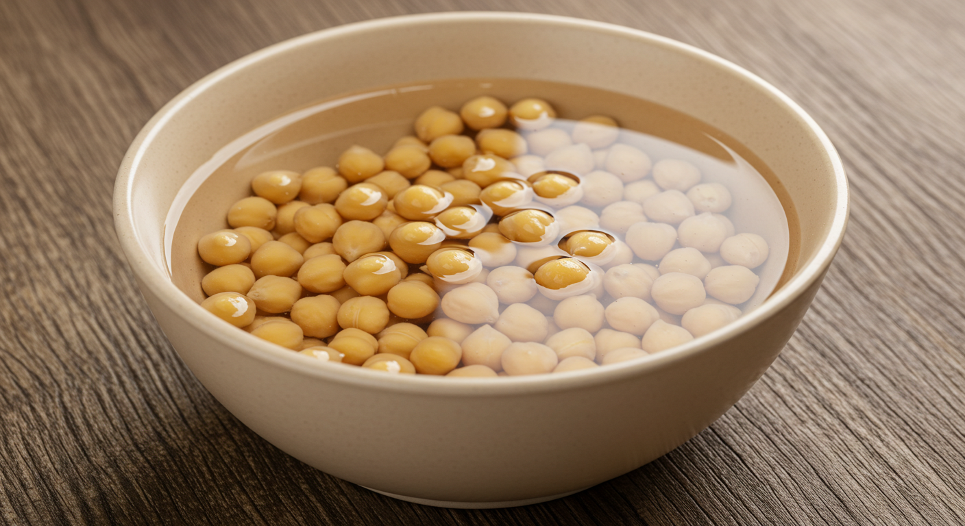 이 과정을 통해 병아리콩의 소화가 쉬워지고, 조리 시간이 단축됩니다.