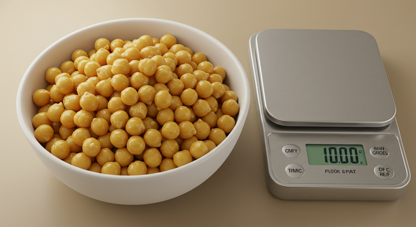 💡 팁: 삶은 병아리콩은 수분을 흡수해서 무게가 약 2~3배 늘어나요.