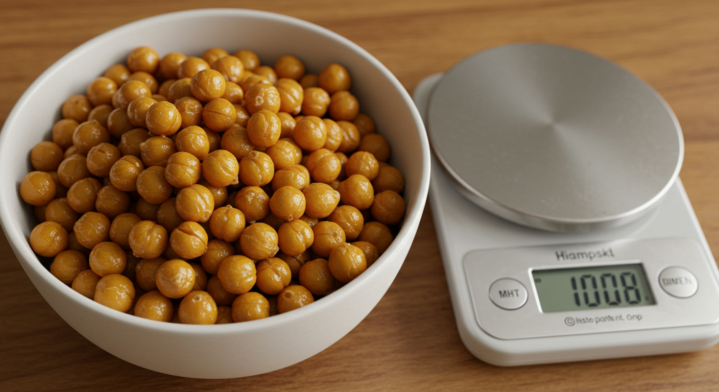 💡 팁: 삶은 병아리콩은 수분을 흡수해서 무게가 약 2~3배 늘어나요.