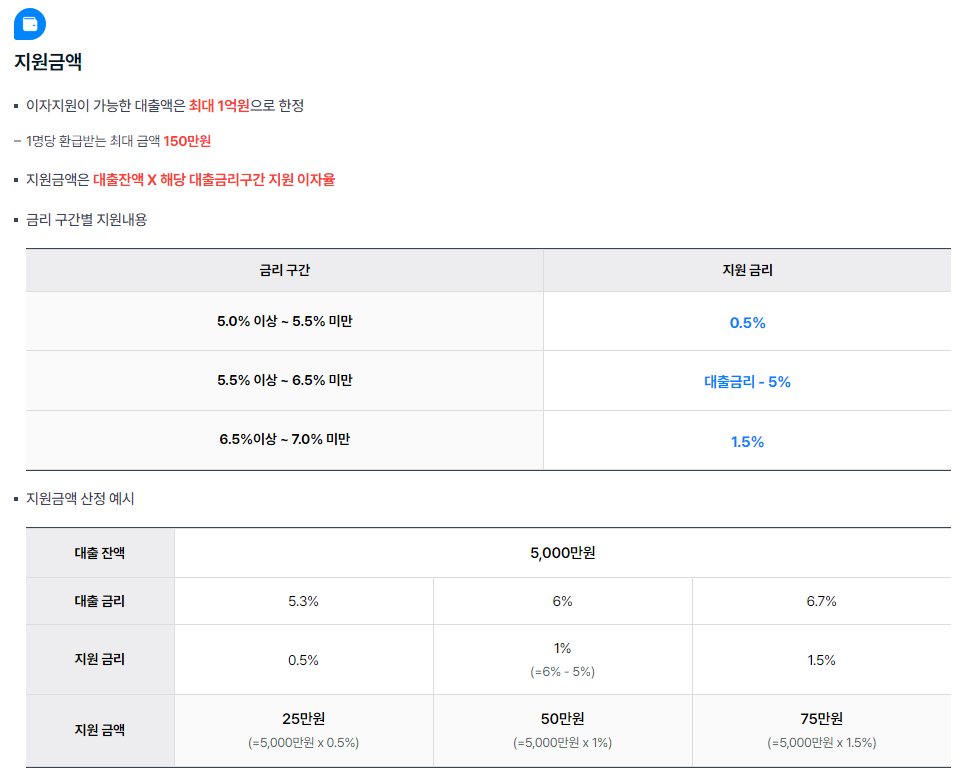 이자 지원가능 대출액 : 최대 1억 원