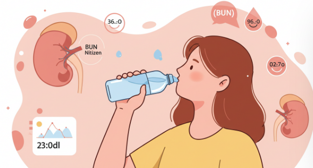 BUN은 신장에서 배설되는 질소 노폐물로, 이 수치가 높으면 신장 기능에 문제가 있을 수 있습니다.