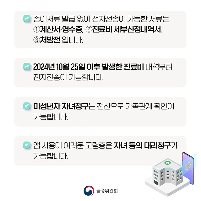 2024년 10월 25일 이후 발생한 진료비 내역부터 전자전송이 가능하니 참고하세요!