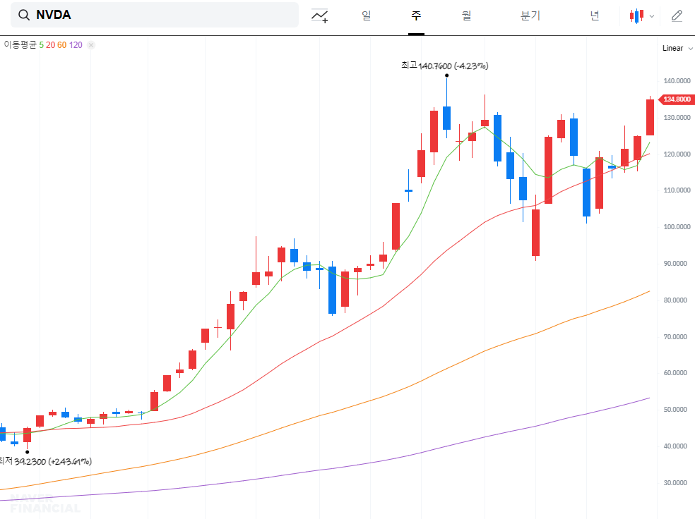 엔비디아와 관련된 3개 종목에서만 6억7000만 달러 이상의 매도 우위가 나타났습니다. 서학개미들은 엔비디아를 3억7291만 달러 순매도했으며, 이 기간 동안 엔비디아 주가는 120달러대와 130달러대를 잇달아 돌파하며 11.6% 급등했습니다. 차익 실현 욕구로 인해 매도 물량이 급증한 것으로 보입니다.