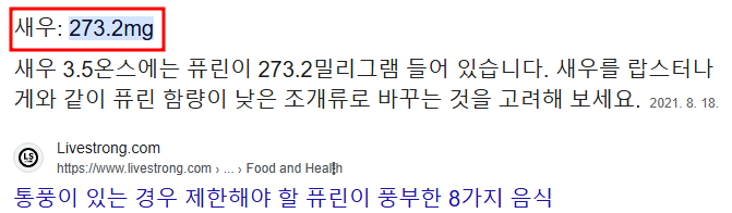 새우는 퓨린 함량이 높기 때문에 통풍 환자가 섭취할 경우 요산 수치가 상승할 수 있는데요.