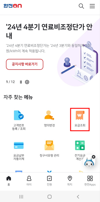 2. 한전 전기요금 조회 방법